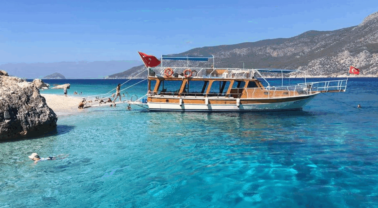 Olympos Koylarını gezerek bol yüzme molallı öğle yemekli (şinitzel, salata, makarna ) tekne turuna katılıyoruz.